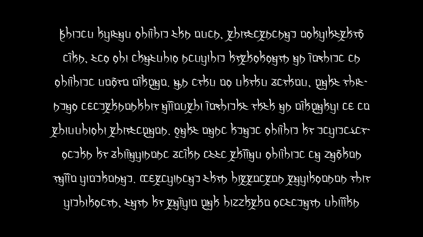 A fantasy-like fictional typeface, in style of black letter, influenced by Hangul.